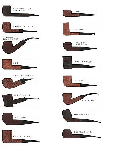 對於每一個人來說,都會有一些既適合他臉型又帶給他愉悅吸煙享受的煙斗。煙斗的式樣都十分地簡單:有專為長瘦身材的男士設計的長瘦型煙斗——加拿大式(Canadian)、直柄式(Billiard)、都柏林式(Dublin)或王子式(Prince)煙斗都非常合適。為矮小結實的男孩們設計的有: 蘋果式(apple),牛頭犬式(bulldogs),作家式(author),罐式(pot)或公牛駝鹿式(bull moose),但無論如何,選擇一款真正能讓自己喜愛的斗型是最重要的。 |